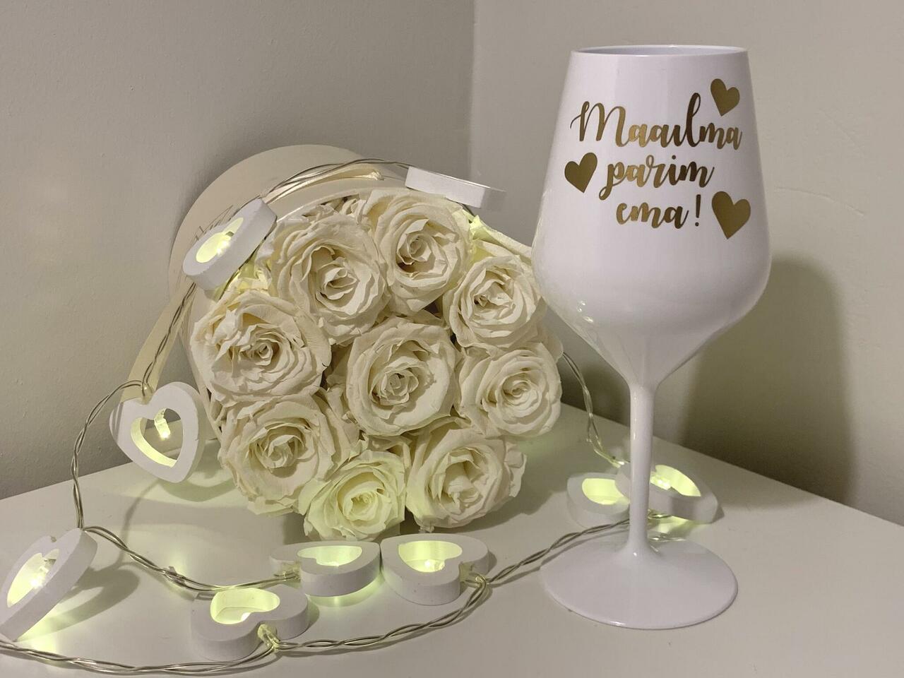 Kui soovid muuta pokaali veelgi personaalsemaks, saame lisaks sõnumile lisada pokaali teisele poole ka sinu ema nime.