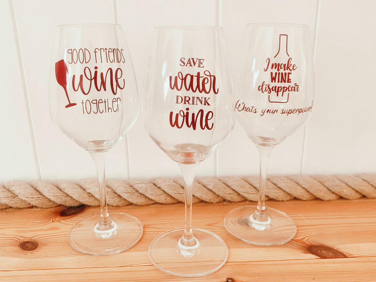 Valikus on 6 erinevat sõnumit veinisõpradele, kuid kui sul on mõtetes mõlkumas mõni enda sõnum, siis on võimalik tellida ka oma sõnumiga veiniklaas. Samuti saad meilt tellida endale nautimiseks või sõbrale kingituseks oma nimega veinipokaali.