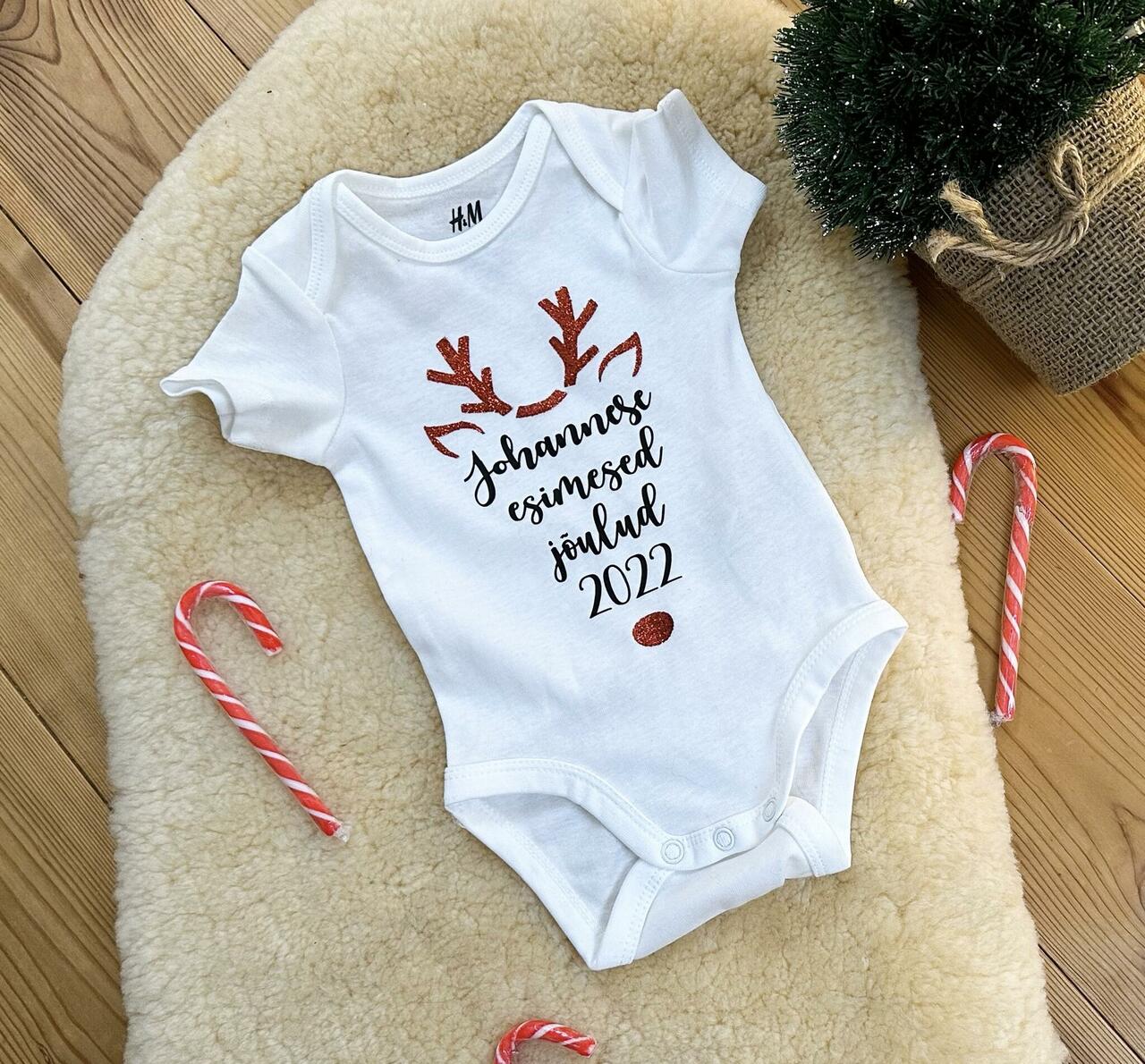 Beebi esimesed jõulud on tähistamist ja jäädvustamist väärt sündmus. See body sobib ilusti jõululaupäeva kostüümiks kui ka niiama armsate piltide jäädvustamiseks sinu kullatüki elu uesimestest jõuludest.