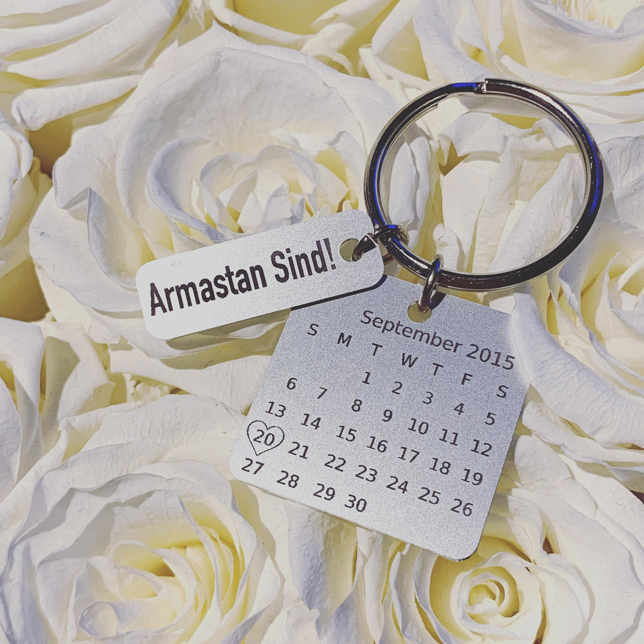 Graveerime võtmehoidjale Sinu poolt vabalt valitud kalendrikuu ning märgime seal Sulle olulise kuupäeva südamega. Just selle Sinu jaoks olulise kuupäeva, mida alati soojade tunnetega meenutad ja tähistad. Olgu selleks siis kuupäev, mil kohtasid esmakordselt oma kallimat, Teie pulmaaastapäev, lapse sünnikuupäev või miks mitte näiteks Teie esimese suudluse eriline kuupäev.